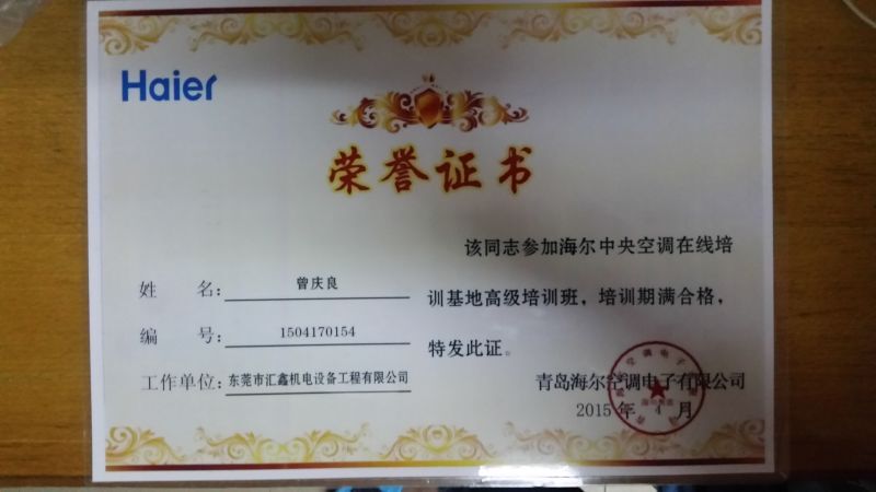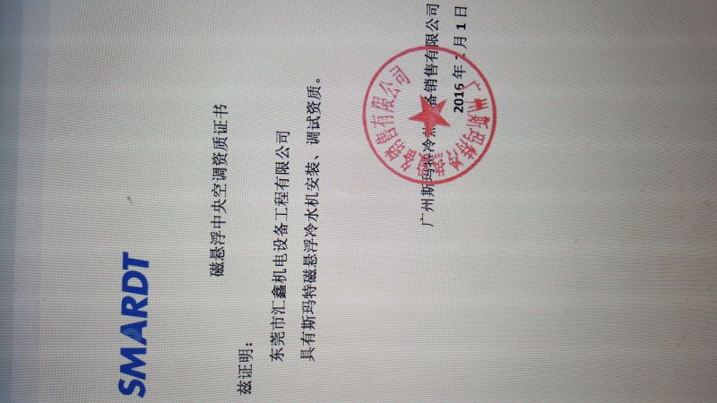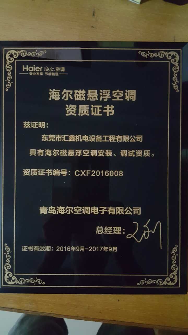 我司獲得“海爾磁懸浮空調(diào)資質(zhì)證書”